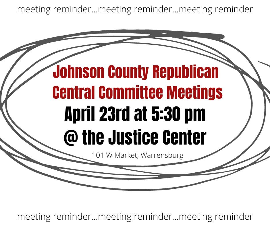 Johnson County Republican Central Committee Meeting on April 23rd, at 5:30 pm.